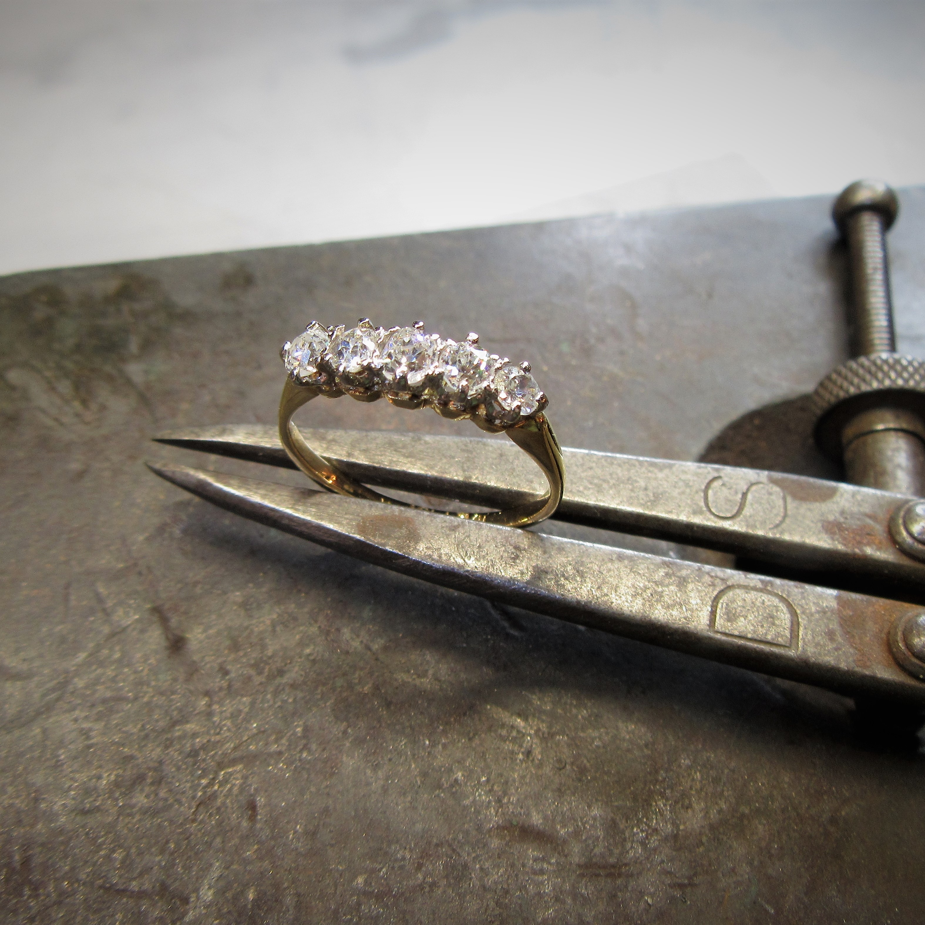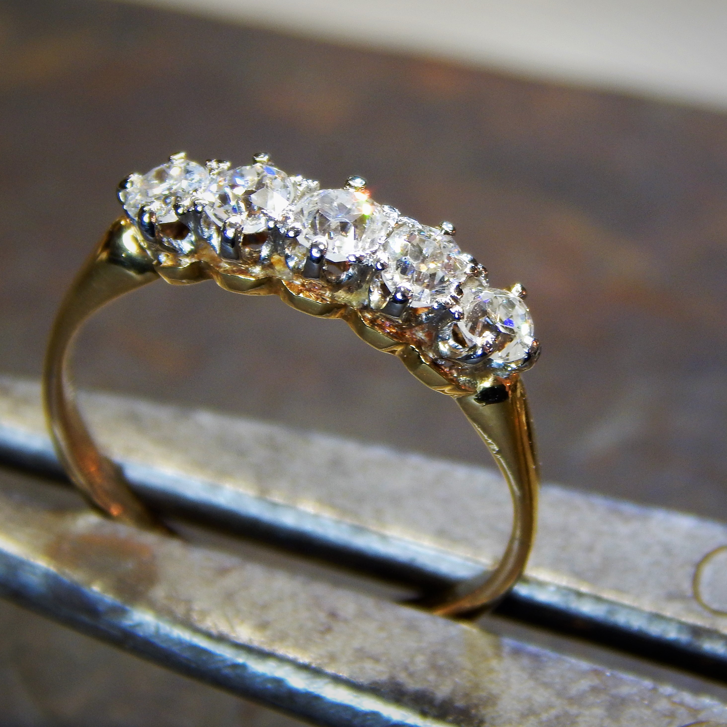 18ct Yellow Gold & Platinum 5 Old Cut Diamond Half Hoop Ring